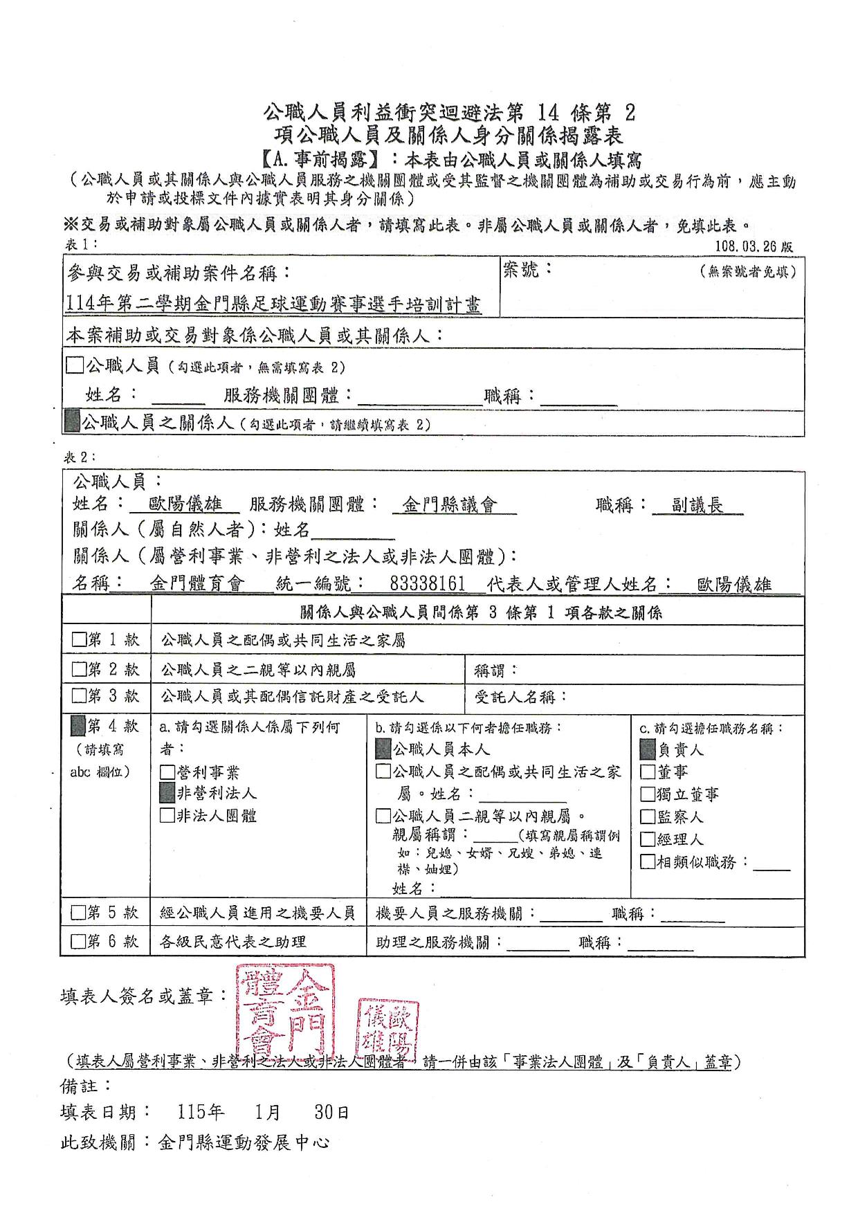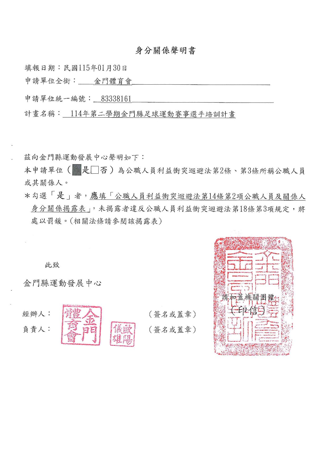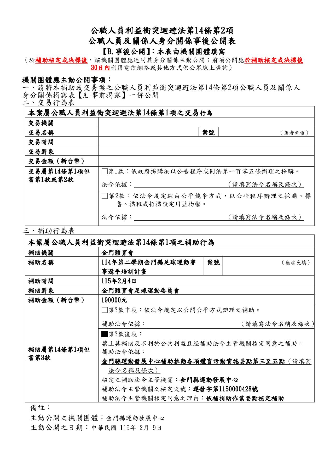 公告115年度「本場提供金門體育會暨所屬各單項運動委員會及本縣立案體育團體辦理各項活動補助」