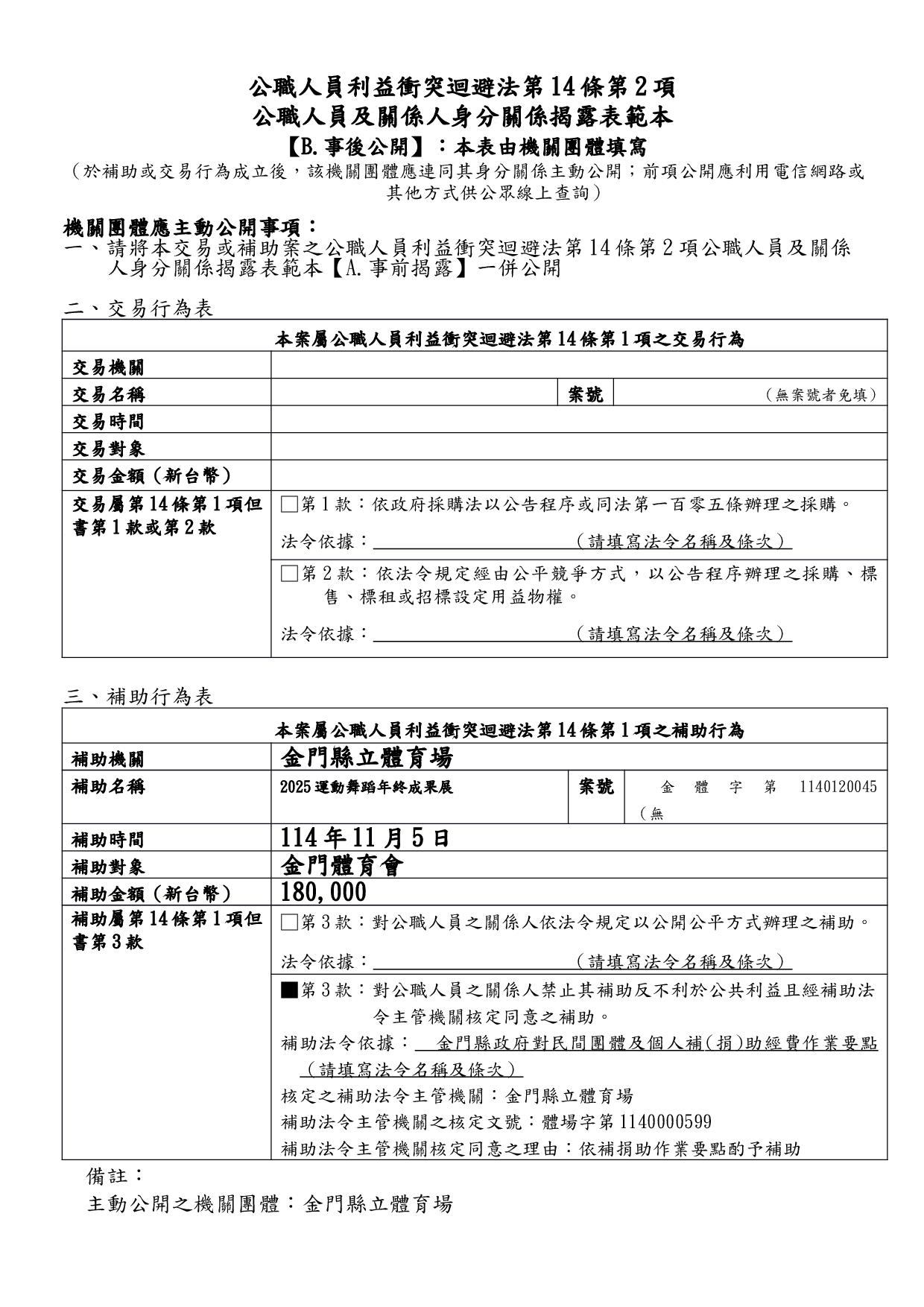 2024金門縣第24屆縣運會暨第10屆離島聯合運動會賽會成績公告