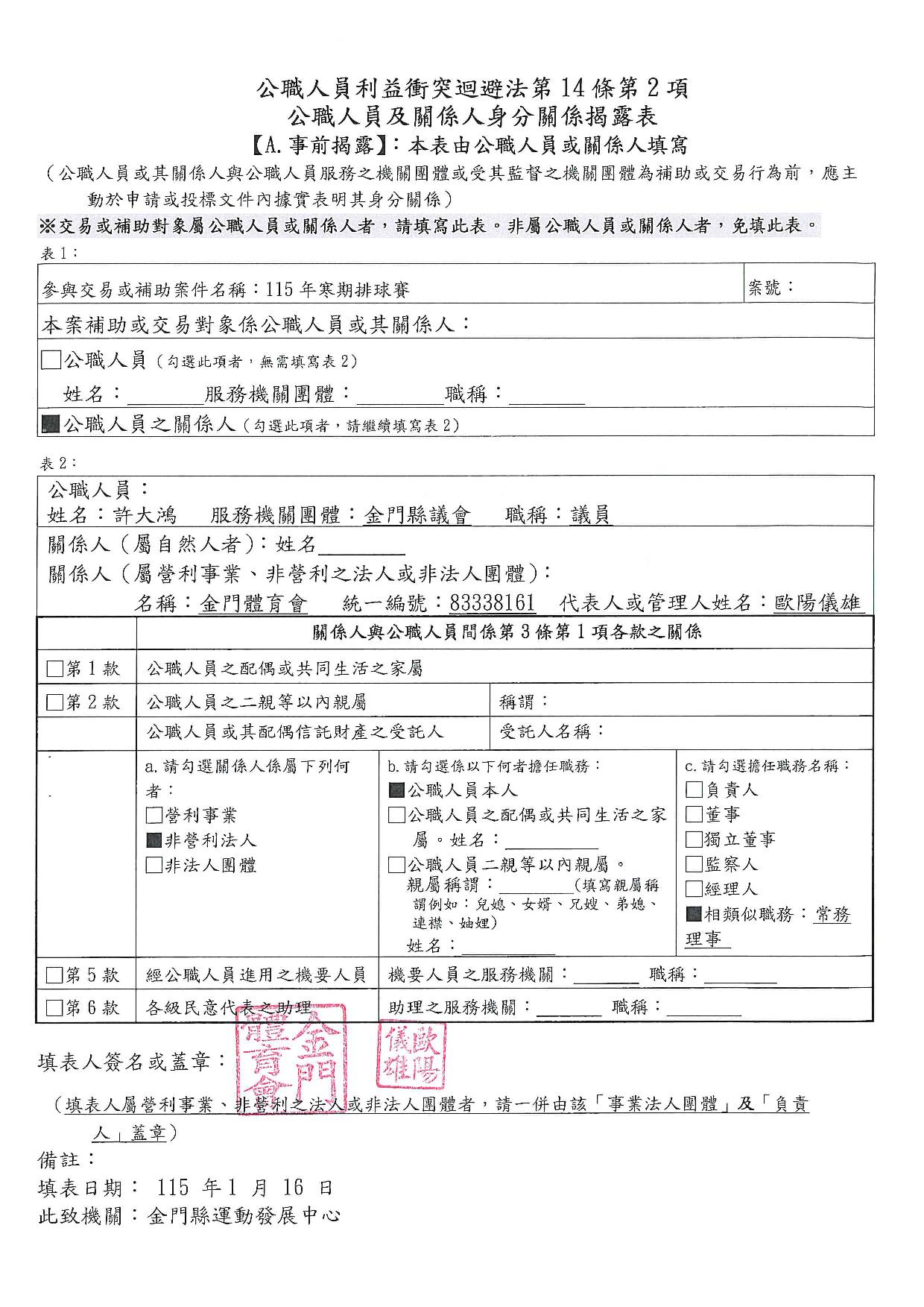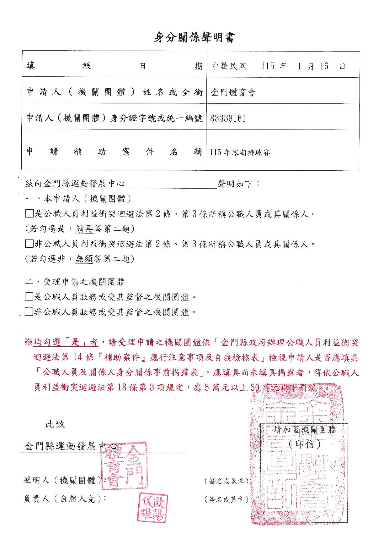 公告115年度「本場提供金門體育會暨所屬各單項運動委員會及本縣立案體育團體辦理各項活動補助」