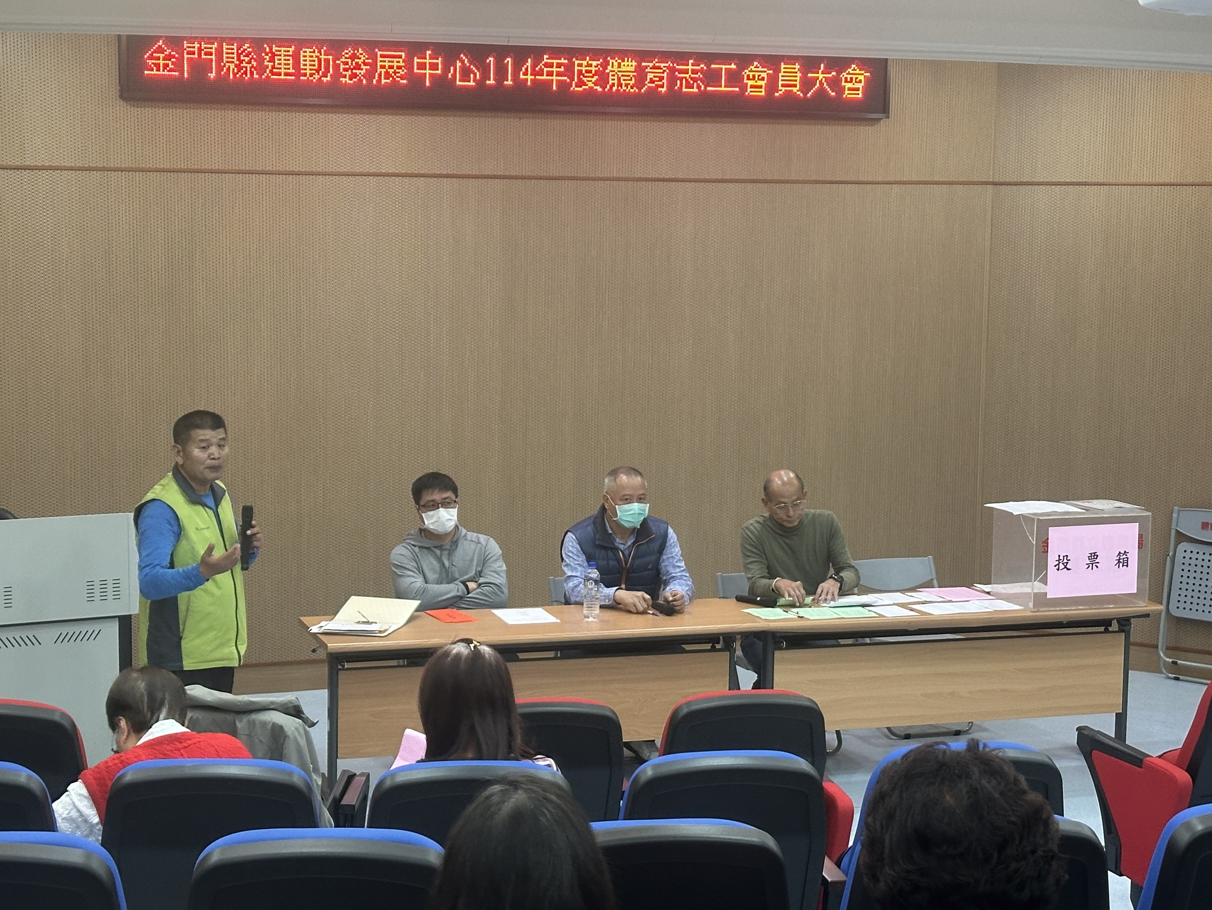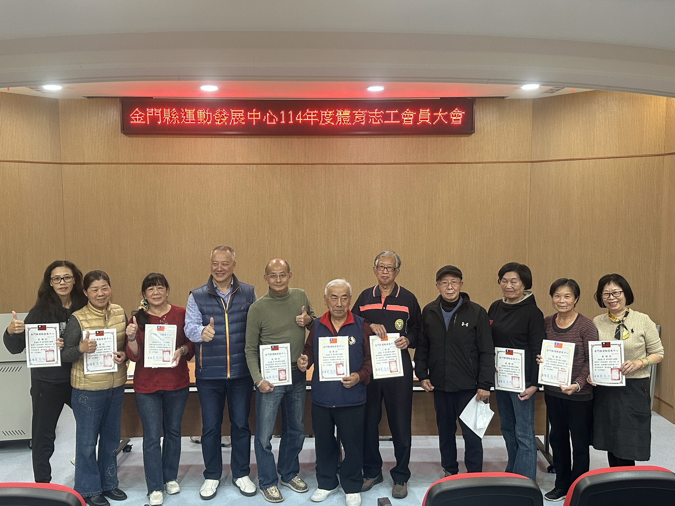 金門縣運動發展中心定於114年12月13日(星期六)下午14時召開體育志工會員大會,特邀請楊基老師(辛炳巍)擔任講座、本中心王志仁主任與會,全場約計有60多名志工到場。楊基老師以做人不忘本、做事不忘初衷為開場白,並以個人親身經歷,喚醒與會者心中的善念,把自已活成一道光,且在人世間多留一些愛與一些溫暖,現場在熱切的共鳴及熱烈的掌聲中落幕,會後楊基老師並把講座所得及交通補助費用全數捐贈予金門縣家扶中心,其熱心公益、以身作責的精神,讓人感佩。另由王主任頒發獎狀及禮品贈與優秀幹部,感謝各位體育志工伙伴們無私奉獻,今年大會為幹部選舉日,在志工們自主分任選務工作下,順利進行,大隊長由陳雅蘭當選,副會長由許丕龍任擔任,總幹事由許開山擔任,會議中志工夥伴相互交流品嚐茶點,在溫馨中結束。